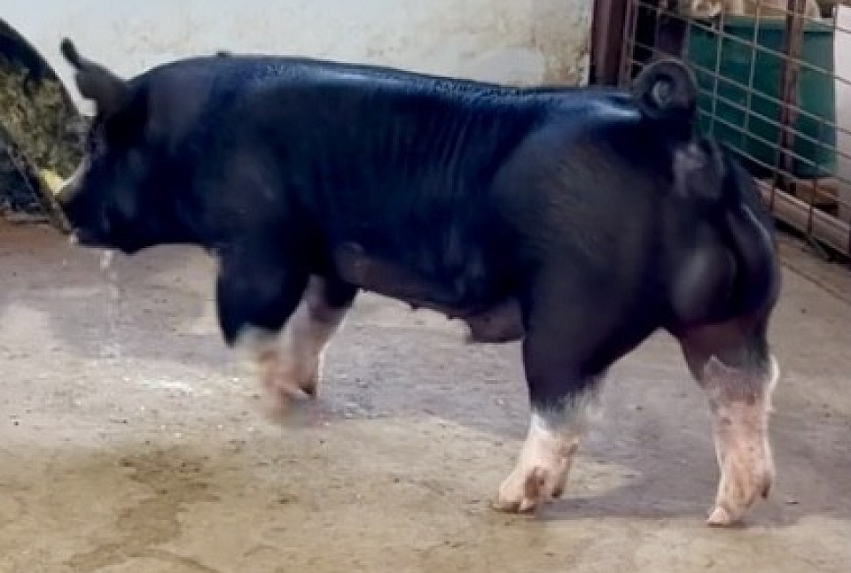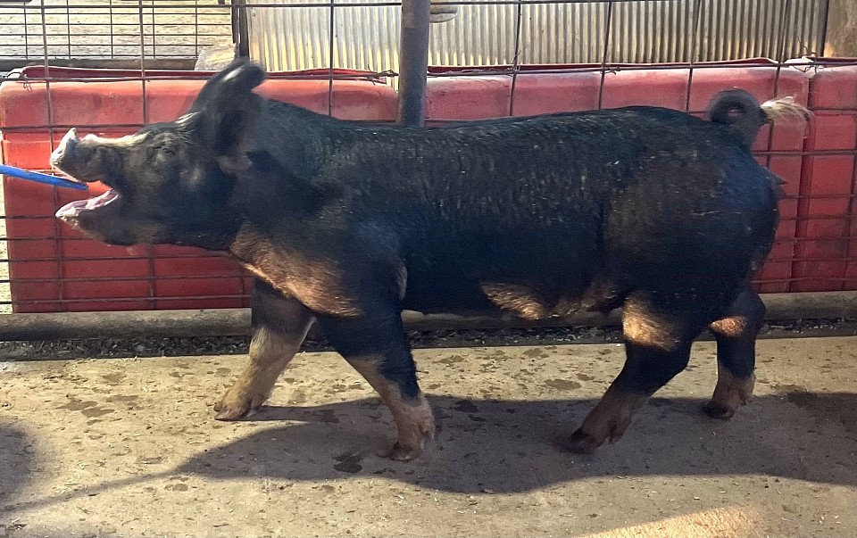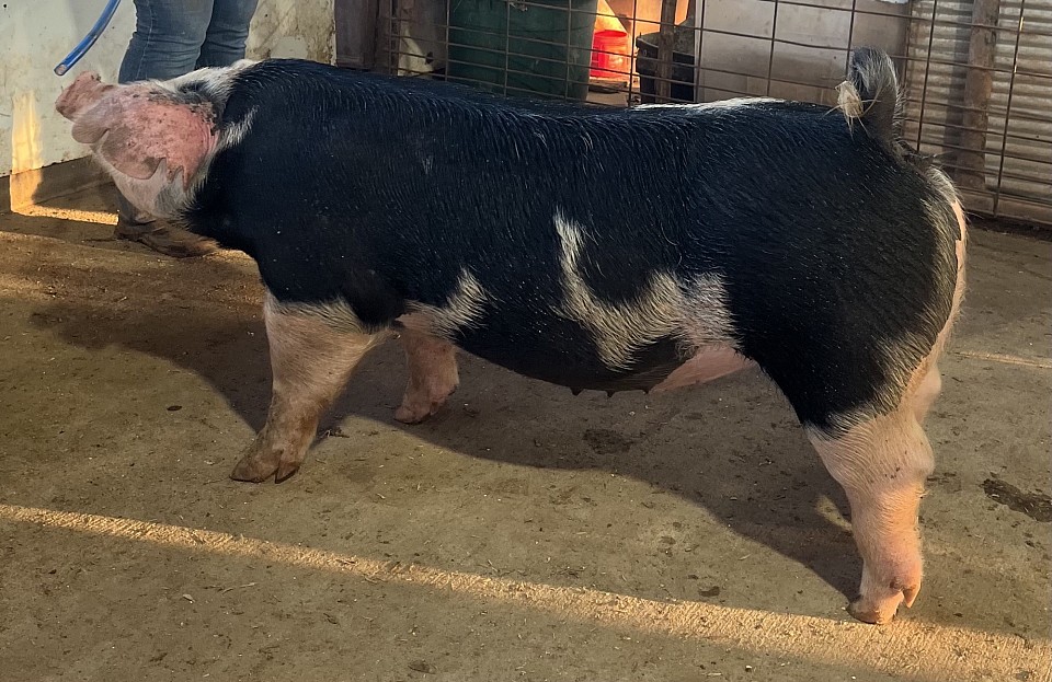 Superior gilts that don't sell as show pig prospects are retained, grown, and offered for sale at breeding age, open or bred. This is a good opportunity for anyone considering raising their own show pigs and/or just want to produce their own pork. Usually, these are Berkshires, but could be Spots, Chesters or Polands. Some boar prospects are retained as well, and may be available at breeding age. As of November 2025, We have 3 breeding age boars (February 2025) for sale; 2 Berkshires and 1 Spot.